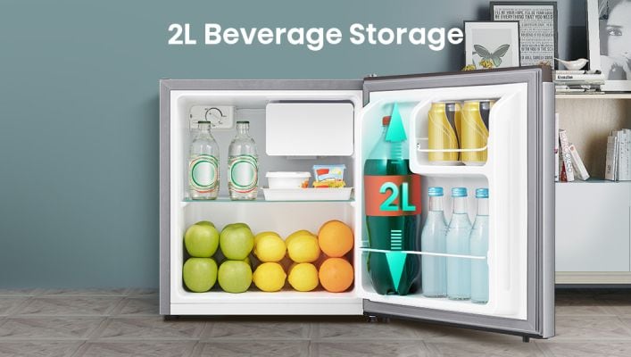 A Big door shelf lets you safely store larger items inside the door. It can handle bulky cartons of milk and juice. So it releases shelf space and is of benefit to parties.
