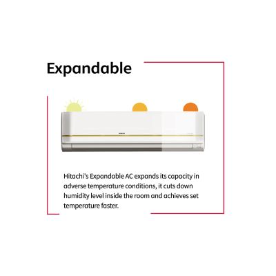 Hitachi's Expandable AC expands its capacity in adverse temperature conditions, it cuts down humidity level inside the room and achieves set temperature faster.