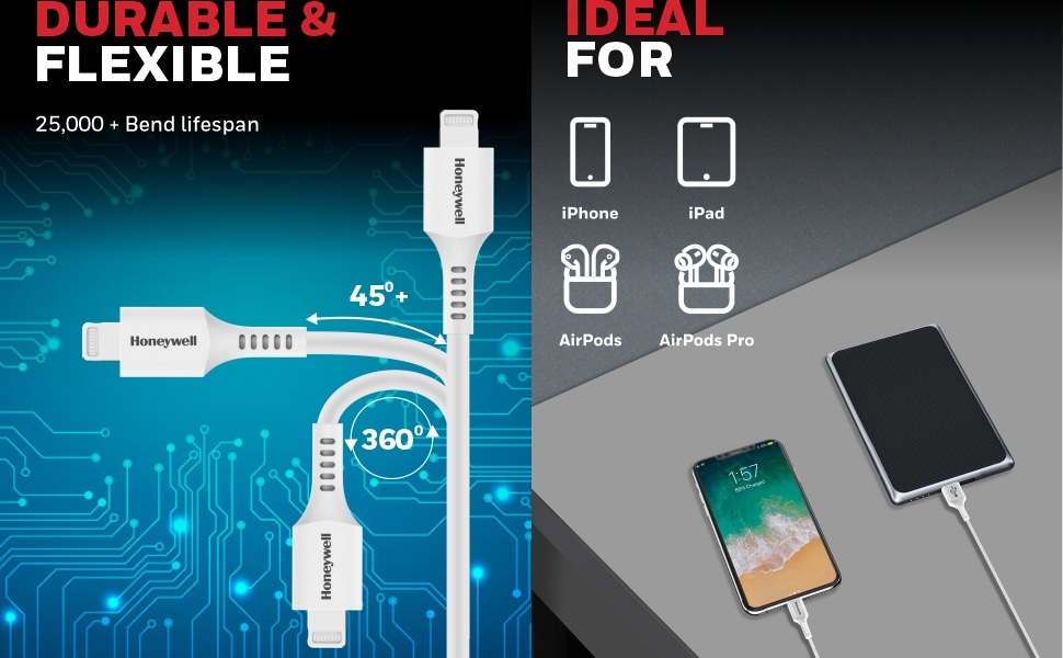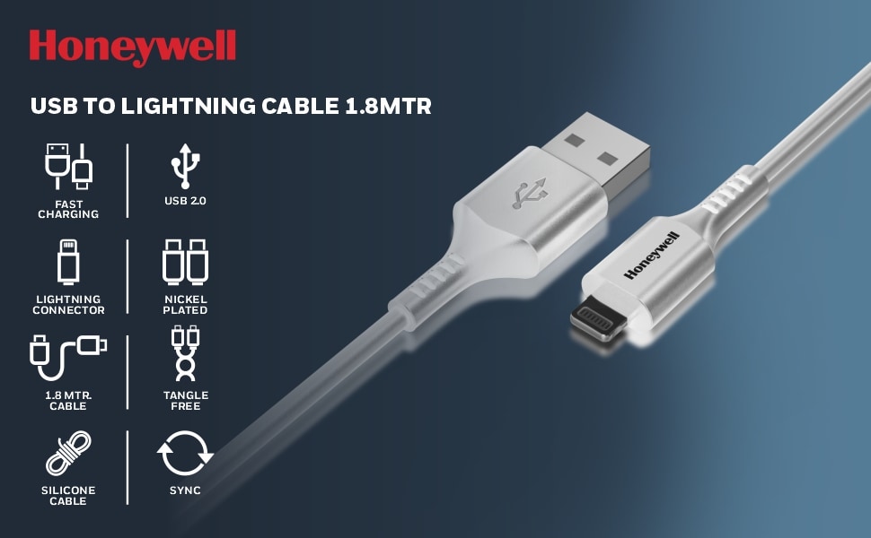 Honeywell 1.8 Meter MFi Certified Apple Lightning Cable, White