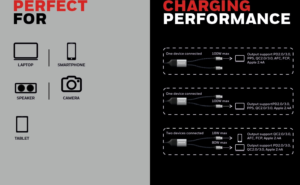 Honeywell 1.8 Meter Type C to Dual Type C Cable, Silver