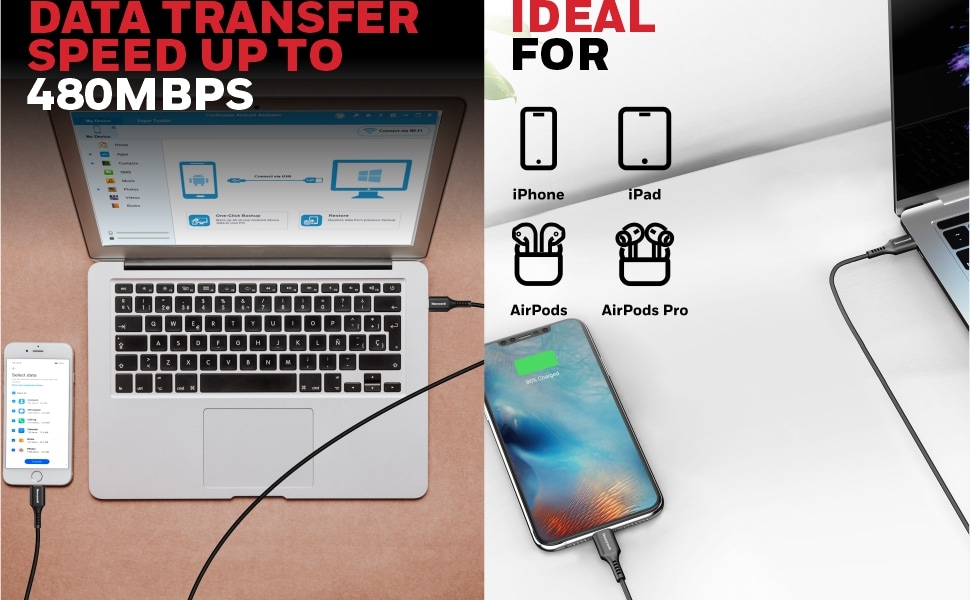 - Apple MFI certified charge and sync cable for your Apple devices