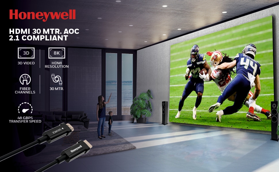 Honeywell 50 Meter HDMI 2.1 AOC Compliant Cable, Black