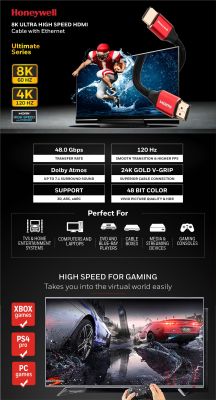 * This Honeywell HIGH SPEED HDMI 2.1 Cable image is for illustration purpose only. Actual image may vary.