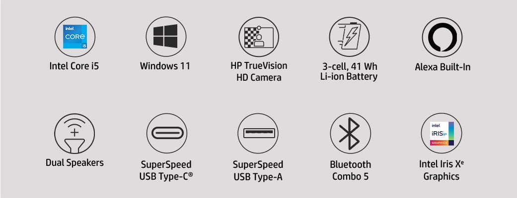 Visual experiences are elevated on this HP laptop i5 8GB RAM 512 SSD with its stunning FHD display powered by Integrated Intel Iris Xe Graphics. This ensures crisp visuals whether you're working on a presentation or streaming your favorite shows.
