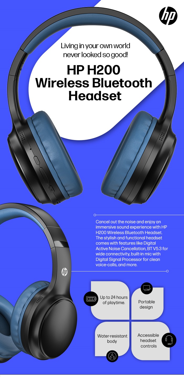 HP 200 Wireless Over Ear Active Noise Cancellation Headphone with Mic