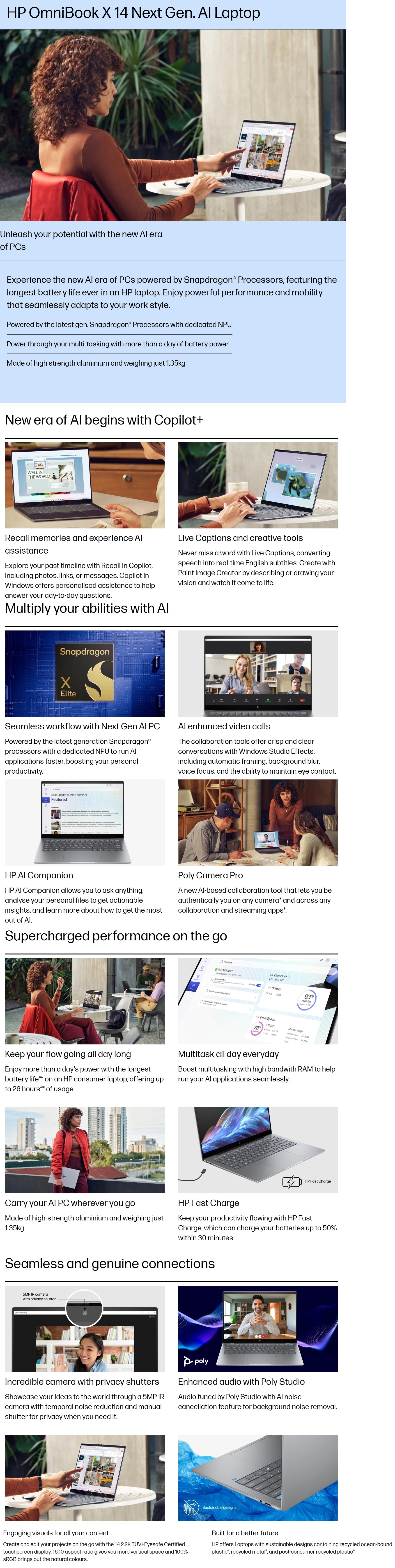 HP Omnibook X 14-fe0121QU Convertible Laptop (Qualcomm Snapdragon/16 GB /1 TB SSD/X Elite Qualcomm Adreno/Next Gen Windows/Microsoft Office 2021 Home & Student/IPS), 35.6 cm - 14 inch, Meteor Silver
