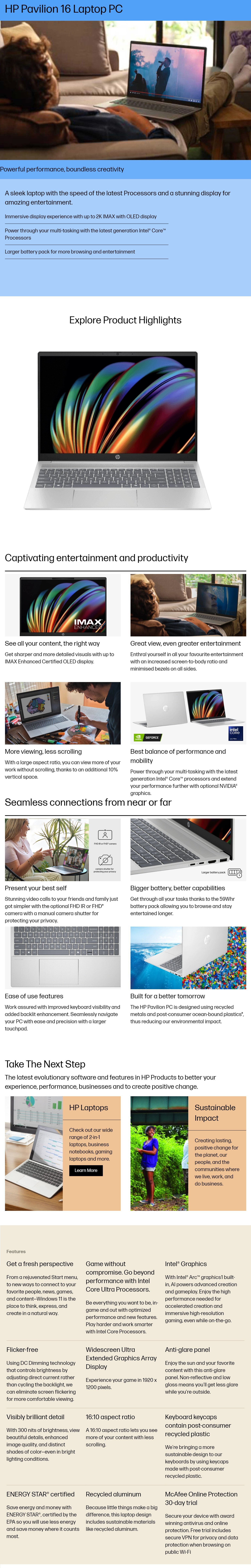 HP Pavilion 16-af0015TU Standard Laptop (Intel Core Ultra 5-125U 125U/16 GB/512 GB SSD/Intel Arc Graphics/Windows 11 Home/MSOffice/Full HD), 40.6 cm (inch), Natural Silver Aluminium