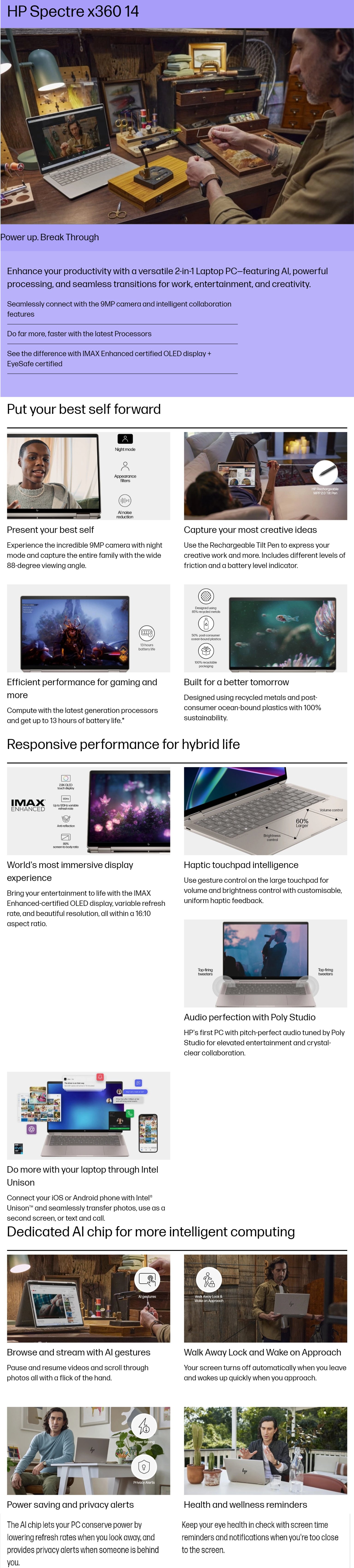 HP Spectre X360 14-eu0556TU Convertible Laptop (Intel Core Ultra 7-155H/32 GB /1 TB SSD/Intel Arc Graphics/Windows 11 Home/OLED), 35.6 cm (14 inch), Slate Blue