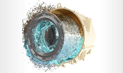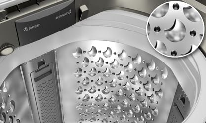 Enables both vertical and horizontal movement of clothes in the drum for uniform soaking and washing.