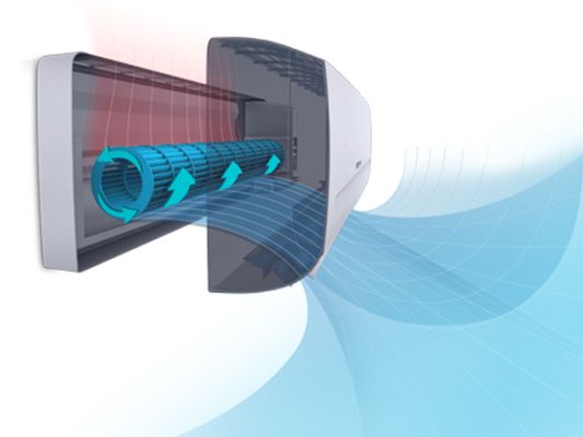 Smooth air flow in every direction with aeronautically inspired, streamlined vents to cool the room quickly.