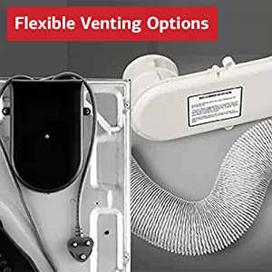 Adjustable duct position, from the side to the top of the machine, using the vent kit provided.