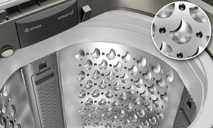Smooth crescent moon grooves on the drum surface create a gentle water cushion that prevents damage to fabrics.