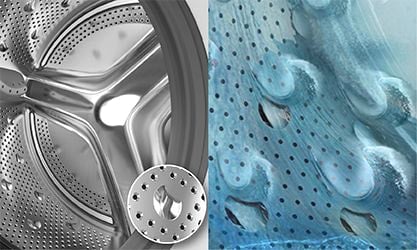 Smooth crescent moon grooves on the drum surface create a gentle water cushion that prevents damage to fabrics.