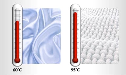 Select 30°C, 40°C, 60°C or 95°C to wash all fabric types. 99.99% germ removal-for cottons use up to 95°C synthetics 60°C.