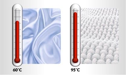 Select 30˚C, 40˚C, 60˚C or 95˚C to wash all fabric types. 99.99% germ removal—for cottons use up to 95˚C synthetics 60˚C.