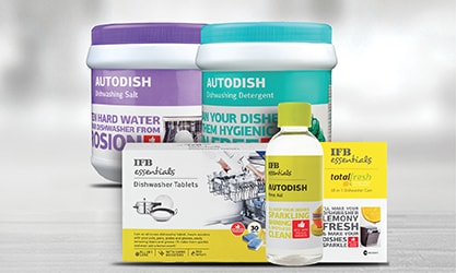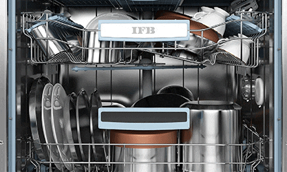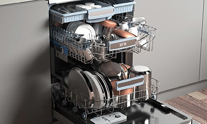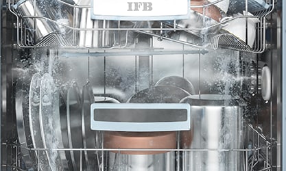 IFB Dishwashers means zero breakages and flexible half loads. They also soften hard water, keeping your dishes spotless.