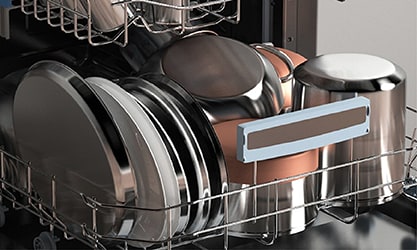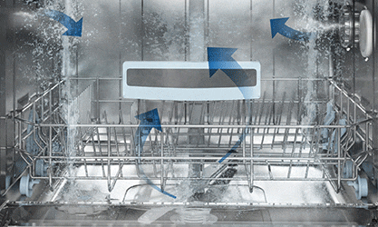 Two large 360 degree spray arms and a wide angle shower spray water over every corner of the utensils.