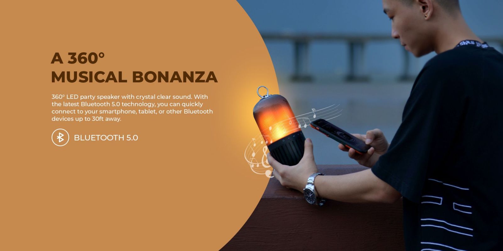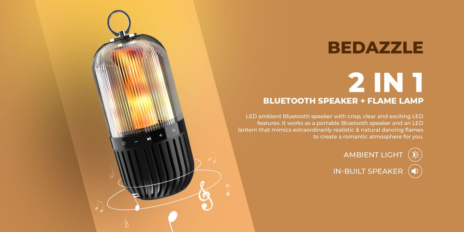 iGear iG-1063 BeDazzle Flame Lamp Wireless Bluetooth Portable Speaker with Ambient Light, Water Resistant