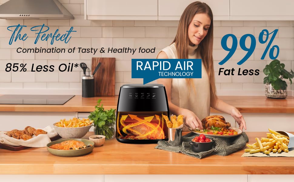 - Shortens cooking time by 50% & reduces oil content by 99%