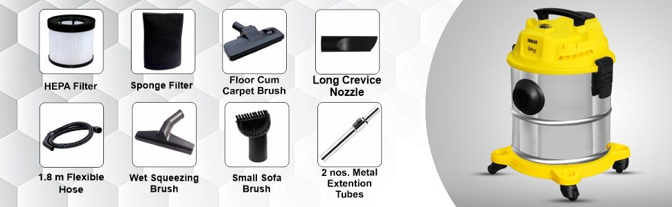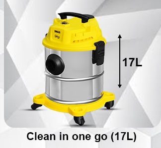 Inalsa MICRO WD17 comes with a 1400 Watt efficient motor that has a powerful suction of 19kpa. Unlike most of the cleaning machine, this not only provides high performance in cleaning but also maintains long life working. For hassle-free cleaning experience MICRO WD17 stands out from other appliances.