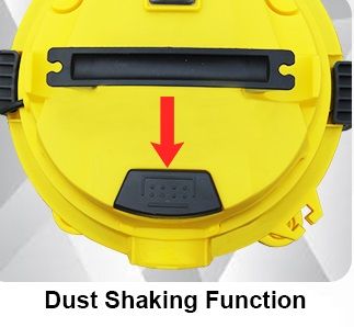 When insufficient suction is found in the process of vacuuming, block the suction port and press the dust shaking button no. of times to enable counter air flow and therefore improve the suction.