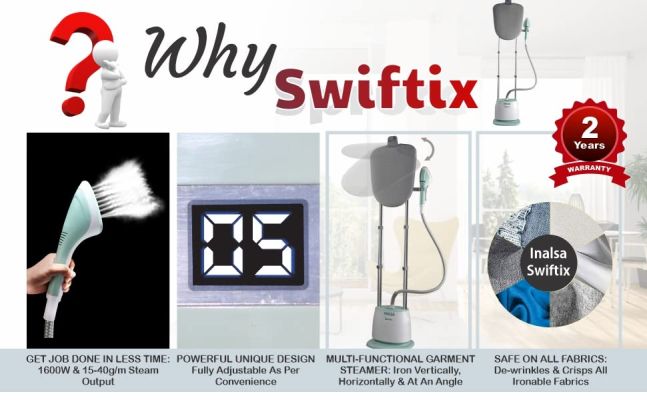NO WRINKLE IS TOO TOUGH FOR INALSA SWIFTIX GARMENT STEAMER