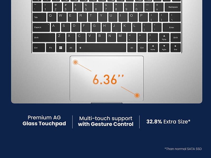 This laptop features a Touchpad for a highly streamlined browsing experience. Also, the enhanced size enables you to raise the touchpad control limit's boundary, serving as your fantastic mouse-free companion.