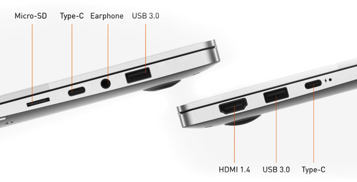 You can incredibly meet your personal and professional demands with 1 x USB-C that supports charging and data transfer, 1 x USB-C for seamless data transfer, 2 x USB3.0, 1 x HDMI 1.4, a dedicated SD Card slot, 1 x 3.5mm Headset & Microphone socket, allowing you to move across without the need of a dongle.