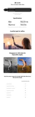 * This Insta360 70cm Invisible Selfie Stick image is for illustration purpose only. Actual image may vary.