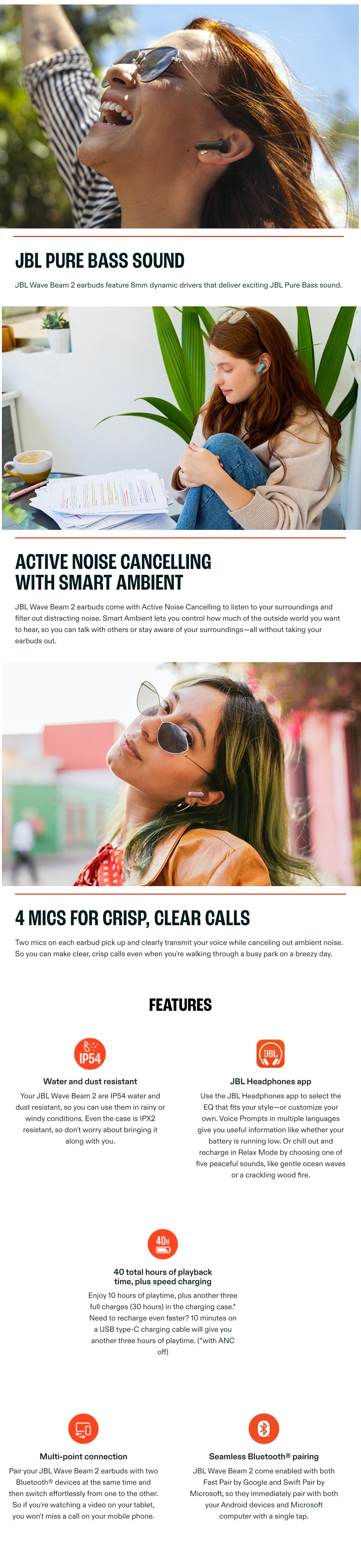 JBL New Launch Wave Beam 2 Ear Buds Wireless TWS Bluetooth v5.3 Earbuds with ANC, Smart Ambient, Extreme Bass & Relax Mode, Multi Connect, Speed Charge, Fast Pair, 40 H Playtime, 4 Mics, IP54 (Black)