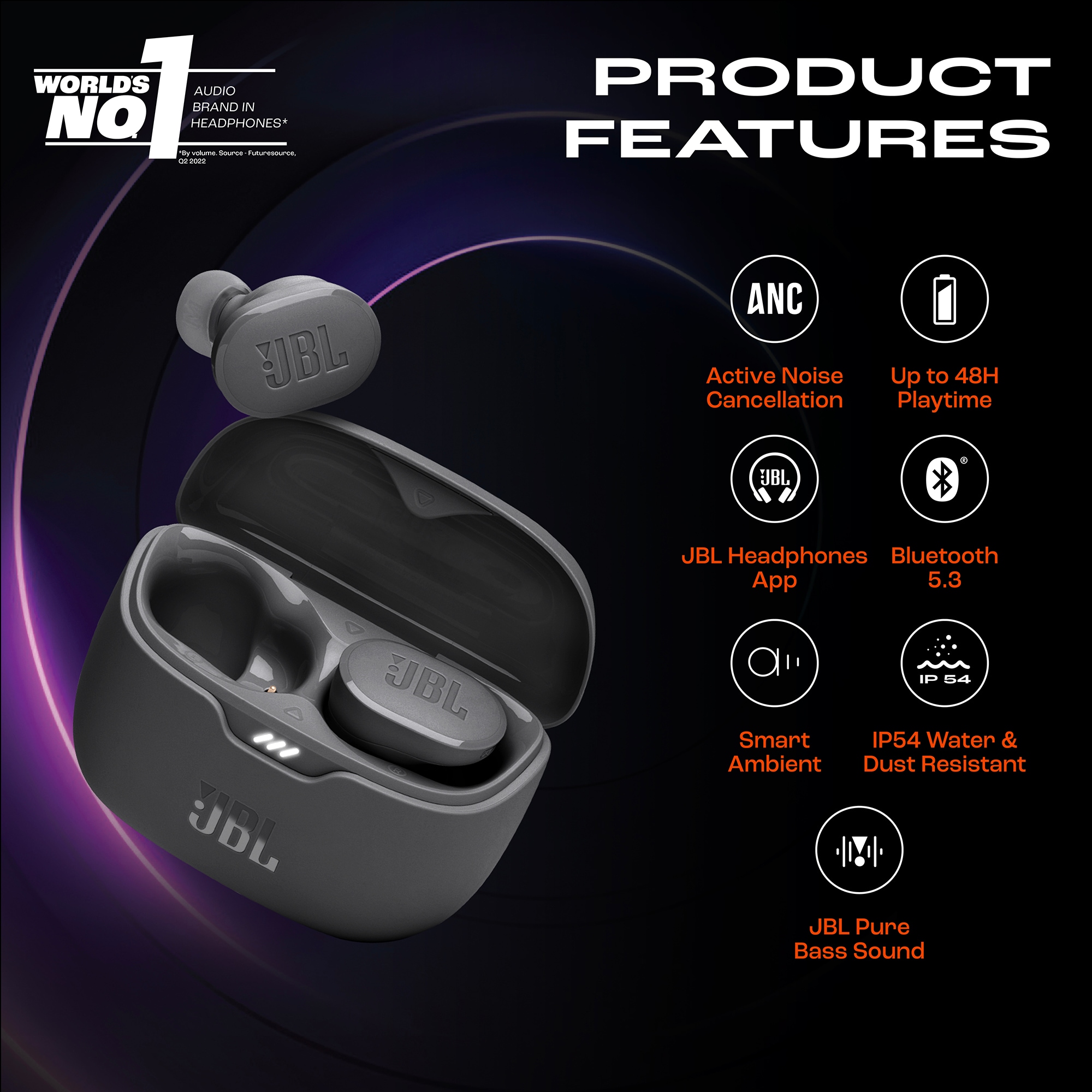 - ACTIVE NOISE CANCELLING: With the JBL Tune Buds TWS listen to more of what you want and less of what you don't. Active Noise Cancellation technology allows you to reduce audio distractions