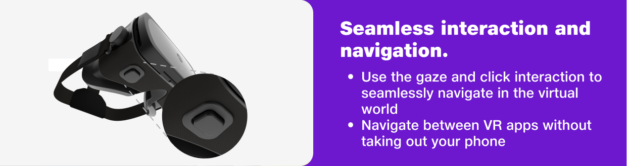 * This JioDive Smartphone image is for illustration purpose only. Actual image may vary.You can navigate effortlessly in the virtual environment on JioDive with the gaze-and-click interaction feature. It helps you navigate between different VR apps and experiences on the JioImmerse app without taking your phone out of the VR headset .