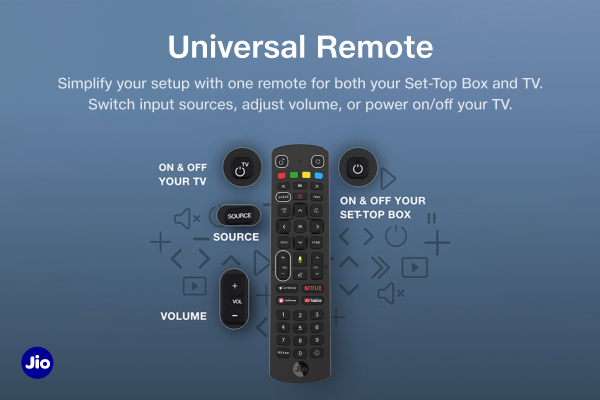 Upgrade your home entertainment experience with the official Jio remote — simple, smart and reliable.