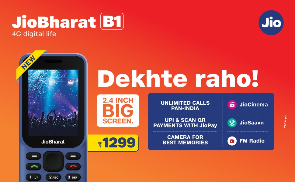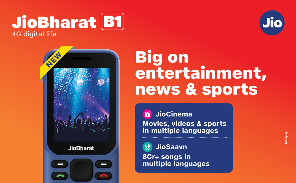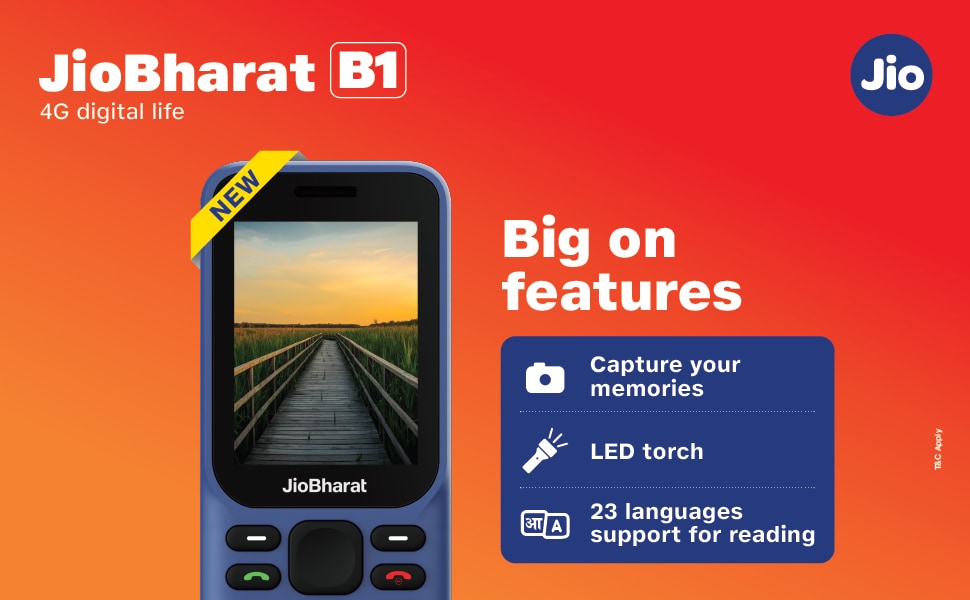 JioBharat B1 4G Keypad Phone with JioCinema, JioSaavn, JioPay (UPI), Powerful Battery (2000mAh), LED Torch, Digital Camera, Blue, Locked for JioNetwork