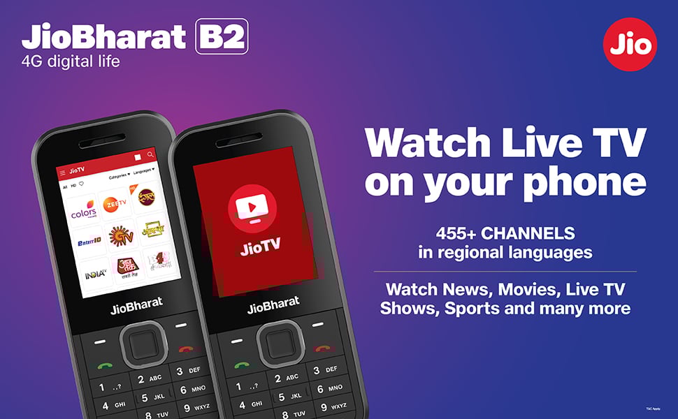 JioBharat B2 4G Keypad Phone with Safety Shield Feature, JioTV, JioHotstar, JioSaavn, JioPay (UPI & SoundPay), LED Torch, Digital Camera, 2000 mAh Battery, Black, Locked for Jio Network