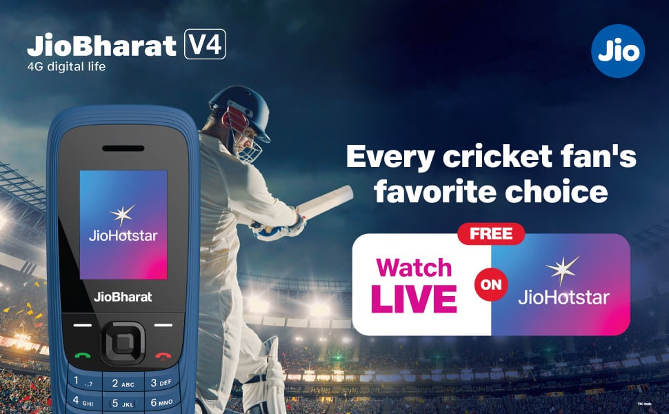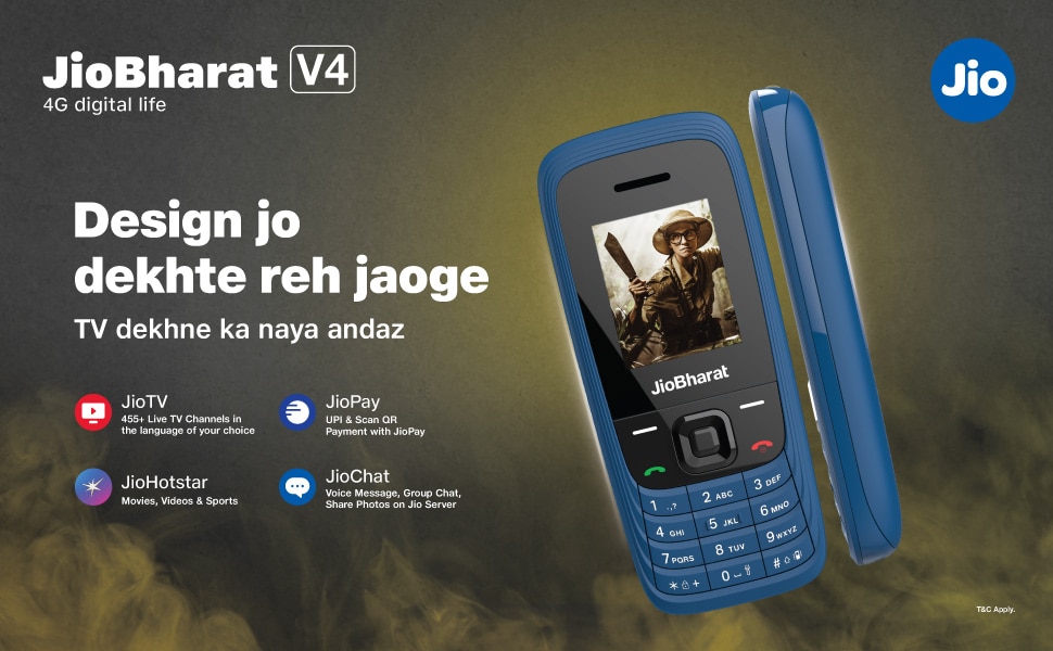 JioBharat V4 4G Keypad Phone with Safety Shield Feature, JioTV, JioHotstar, JioSaavn, JioPay (UPI & SoundPay), LED Torch, Digital Camera, 1000 mAh Battery, Blue, Locked for Jio Network