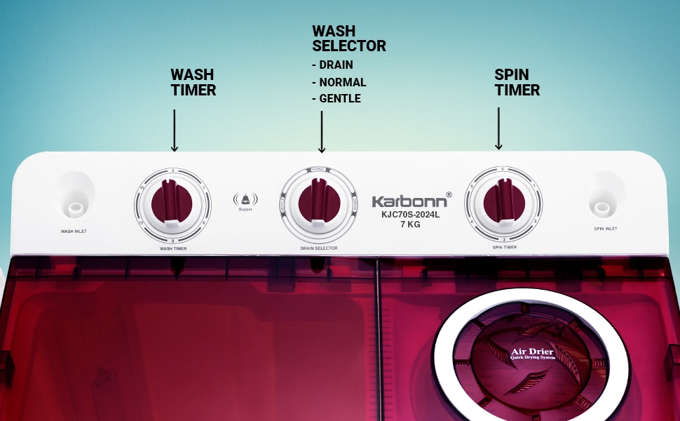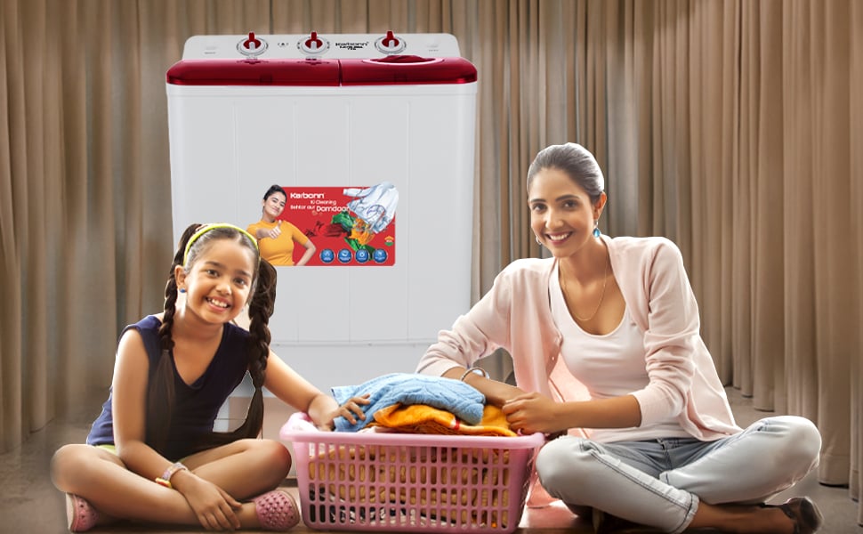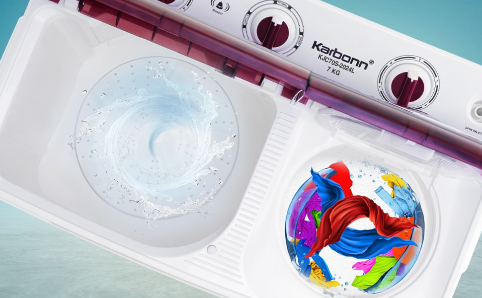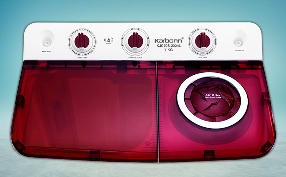 Karbonn 7 Kg Semi Automatic Top Load Washing Machine, White/Red, KJC70S-2024L