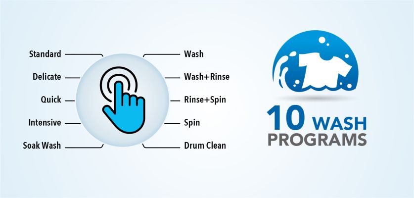 - Wash Perfomance: 10 Wash Programs, Air Dry