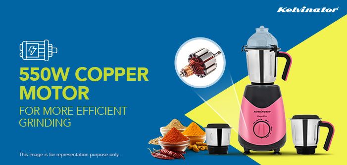 Kelvinator Magnifico KMG00455 Mixer Grinder with 3 Jar, Pink Black