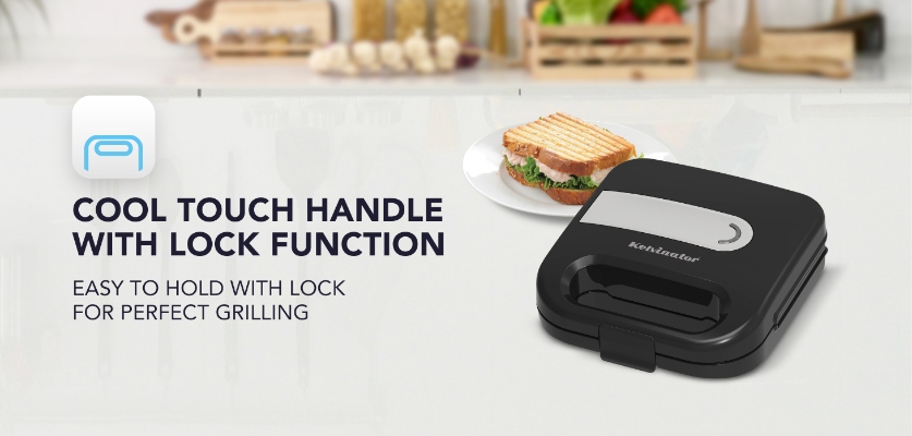 The Sandwich Maker’s handle is safe to be operated with bare hands while the machine is in use. It prevents burning the hand and the lock provides optimum support for perfect grilling.