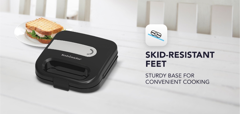 Kelvinator Sandwich Makers come with a rubber foot to ensure better stability while cooking and prevent it from sliding the kitchen slab.