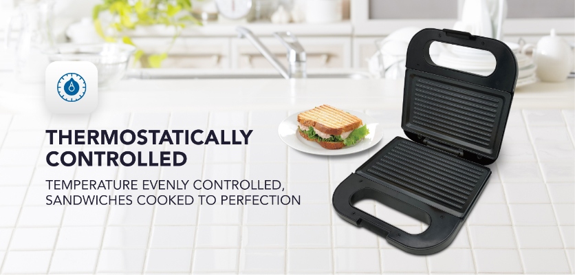 Thermostatically controlled Kelvinator Sandwich Makers maintain a constant heat temperature to ensure a near to perfect, crispy toast sandwich.