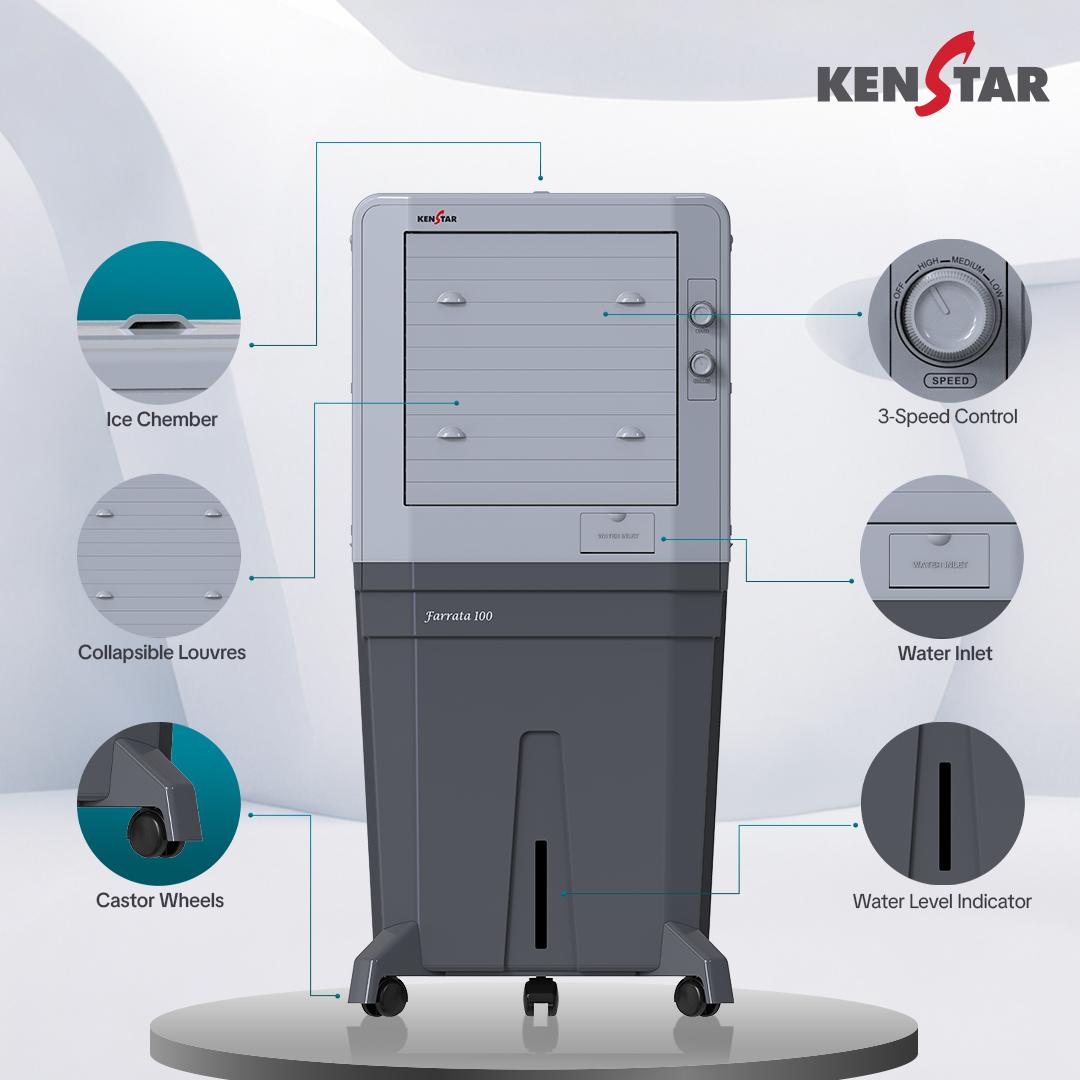 Kenstar Farrata 100L Desert Air Cooler, Light Grey & Dark Grey