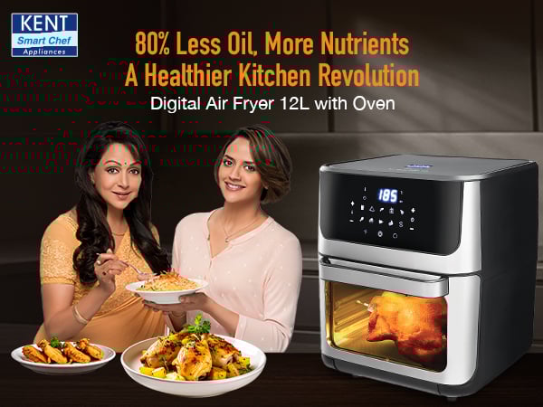 Kent Digital 12 L Air Fryer 1700 W, Black and Silver