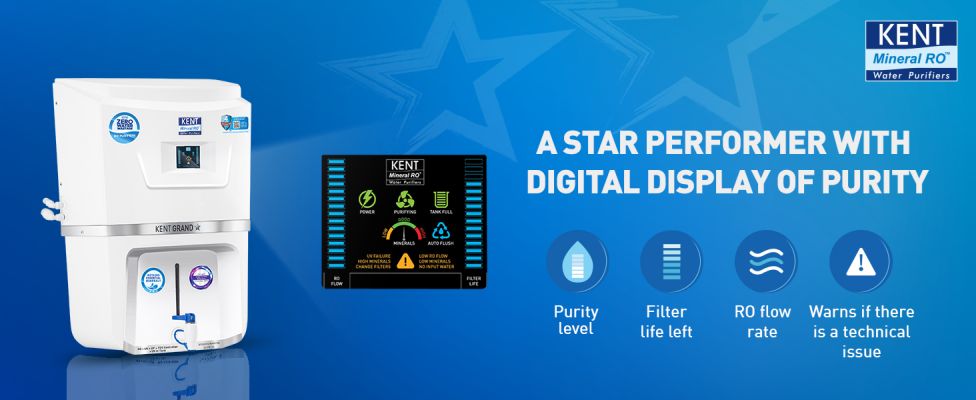Kent ZWW Series Grand Star, 9 Litres, 60 Watts, RO+UV+UF+TDS Water Purifier, Digital Display of Minerals, Purity and Zero Water Wastage, White