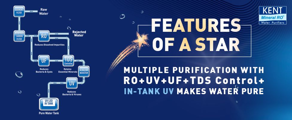 - RO+UV+UF+TDS Control+ UV disinfection Process