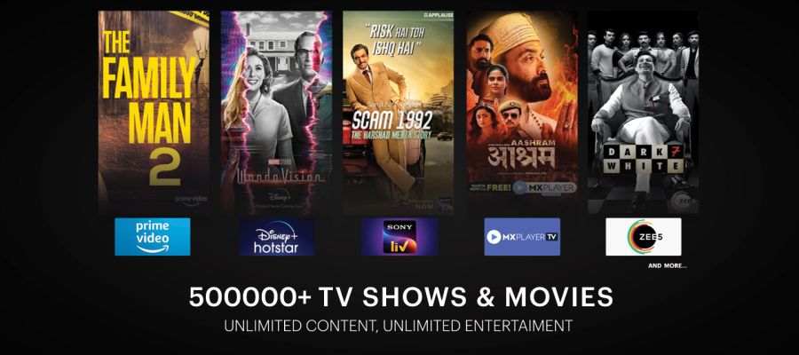 - Supported Apps: Youtube, Disney+Hotstar, SonyLiv, Hungama, JioCinema, Zee5, Eros Now, Oxygen Play, Prime Video