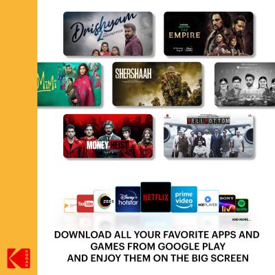 Top apps, games, movies & more available on Google Play Store. Bring home Kodak TV and enjoy Entertainment at your fingertips. Everything you need, recommended for you, available just a click away. Explore Google Play Store through dedicated hotkeys and download instantly. Enjoy 6000+ apps and games both online & offline.