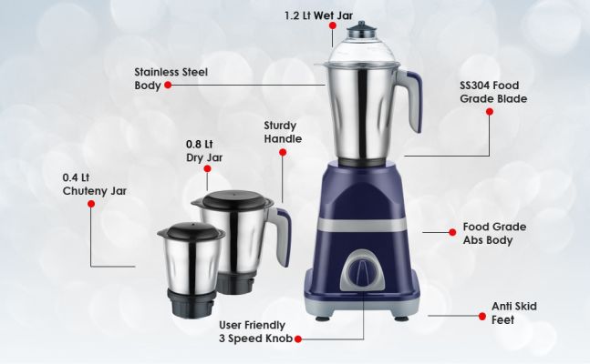 KUTCHINA MISI Karizma 750 Watts 3 Jar Mixer Grinder with Anti Skid Feet
