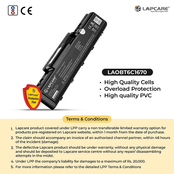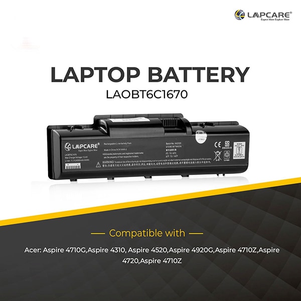 * This Lapcare LAOBT6C1670 Rechargeable Battery image is for illustration purpose only. Actual image may vary.